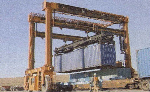(通过使用图示的起重机帮助货物的移动,从火车上移到推车上。集装箱可以通过海运、火车和卡车运输到全国各地。自1947年投入市场,使用过A/F的地坪已经超过2亿平方英尺。)